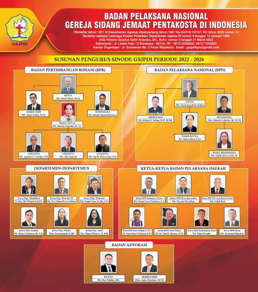 KOMPOSISI KEPENGURUSAN SINODE GSJPDI
